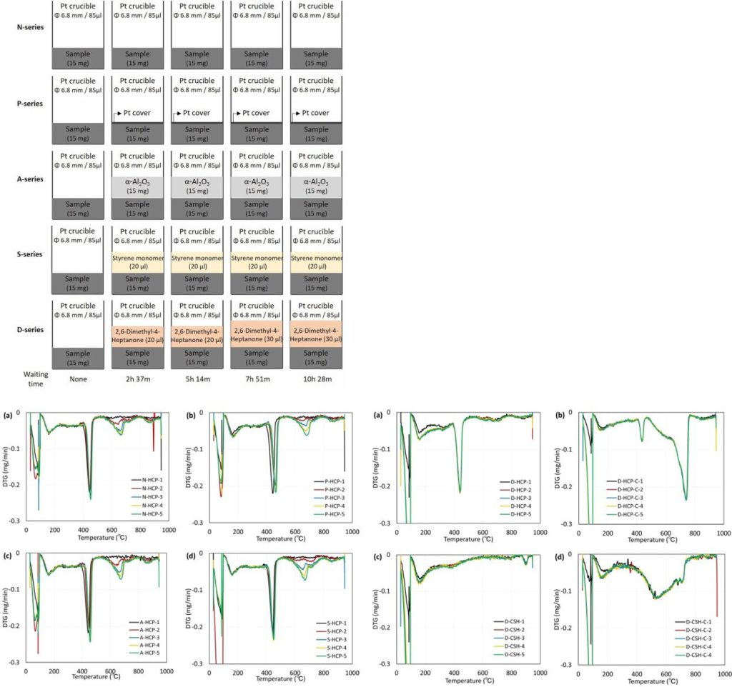 本論文では,TG-DTAのサンプルホルダに設置されたセメント系材料へ,極力影響を与えない添加剤を滴下するだけで,サンプル表面をバリアし,オートサンプラー用待機ステージに数時間存置しても炭酸化しない「サンプル保全手法」とその測定結果を評価した内容を報告しています。
